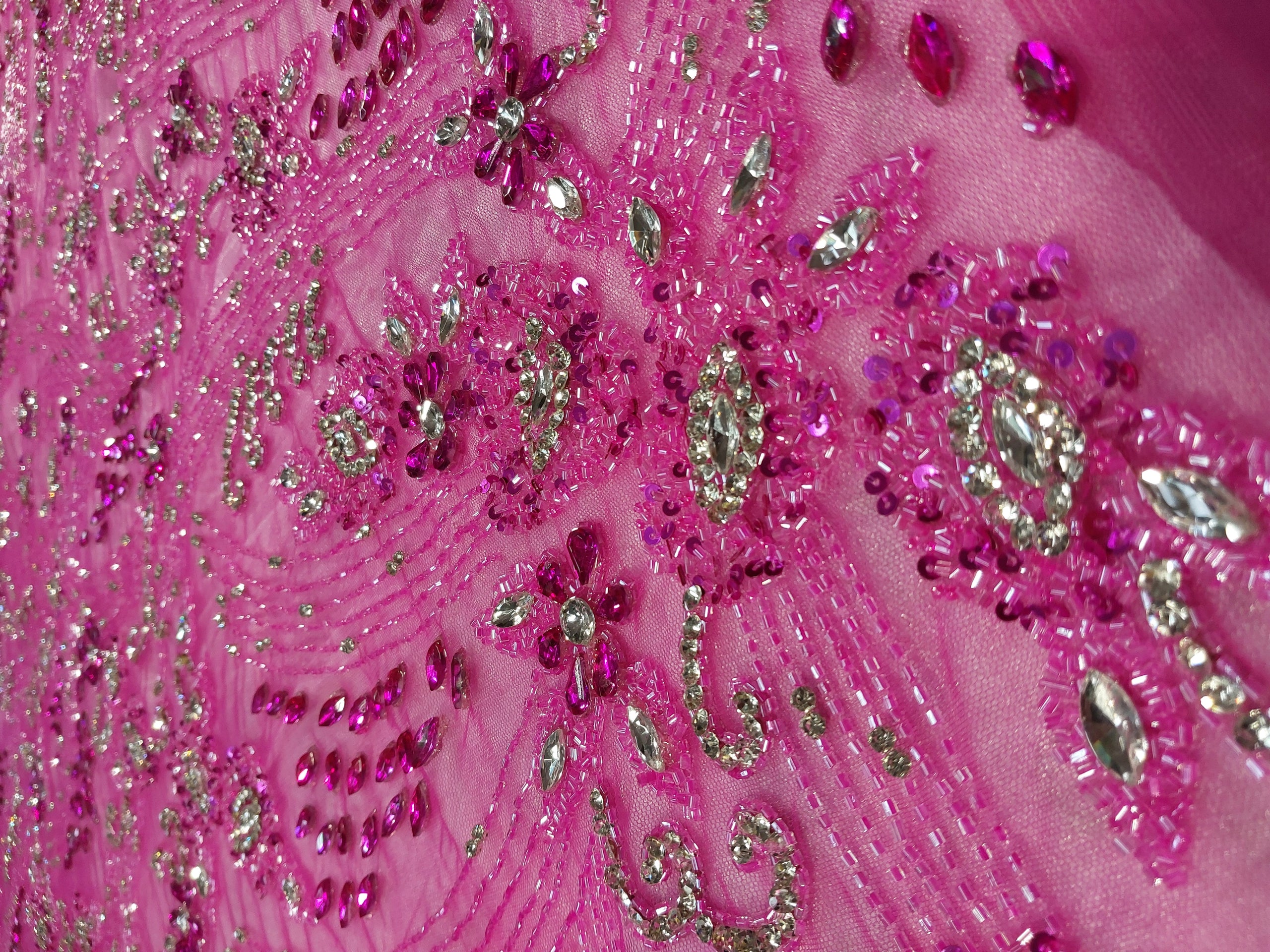 Bridal Hand Beaded Net Lace Fabric By Shubham Collection.